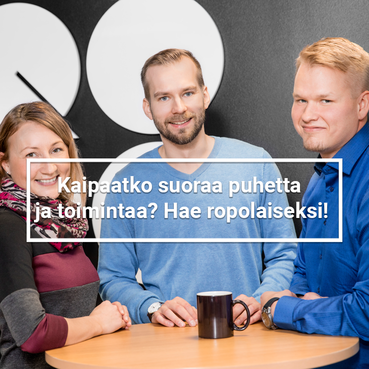 Me Ropo Capitalilla huolehdimme yritysten laskutuksesta kokonaisuutena ja kuukausittain yli 8 000 yritystä luottaa palveluihimme. Kokonaispalvelumme kovasta kysynnästä johtuen ropolaisten joukko kasvaa vauhdilla, ja meillä on ilo tarjota mielenkiintoinen työpaikka liiketalouden osaajalle kansainvälistyvässä organisaatiossamme.